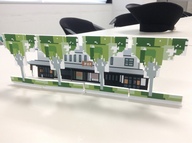 こんな感じに…。窓、のれん、扉、屋根などの建物の一部や、