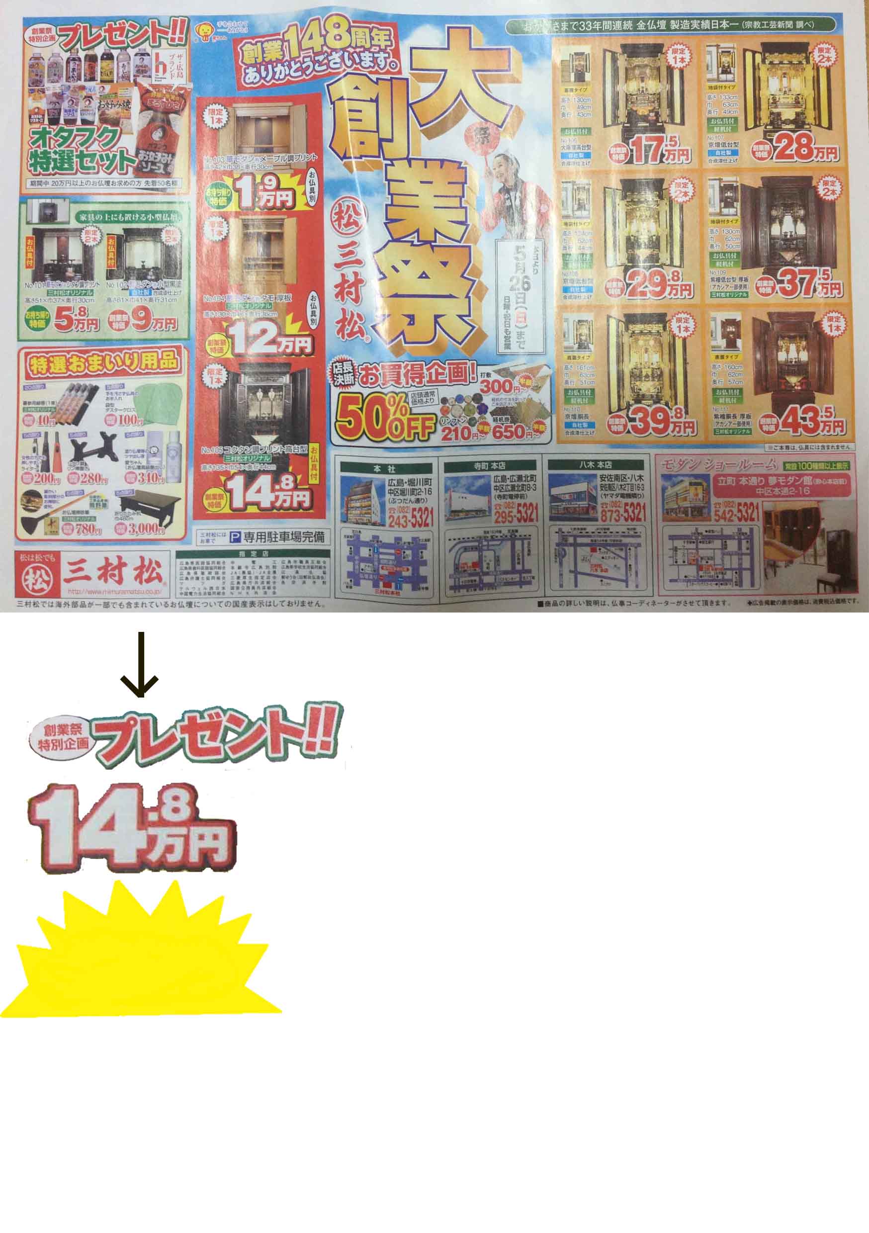 例) 仏壇のチラシ 値段やコピーなどを分解させる 文字の後ろにある色や形なども素材としてピックアップする