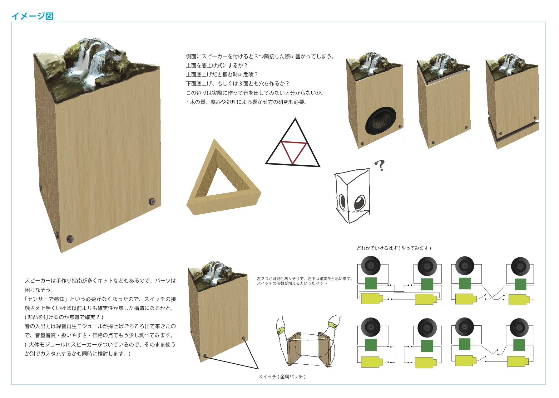 A1 有賀■アクリル→木の方向に変えて、イメージ図・制作方法等考え直してみました。試作までは着手出来ていません…■制作の上での研究部分で参考になるかと思って数冊図書館で借りてきました。ぼちぼち読みます。・なぜ猫は鏡を見ないか?・響きの科学・音楽と数学の交差・音楽好きな脳・日本の音[0回]PR 2013年 06月 16日| 有賀|Comment(0)