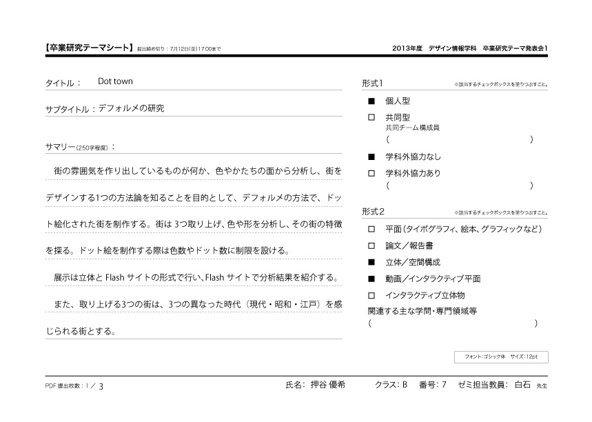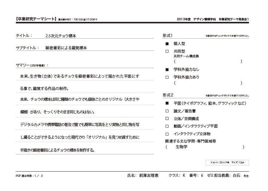 仮完成した卒業研究テーマシート ※確認し修正すべき点があれば指摘します。
